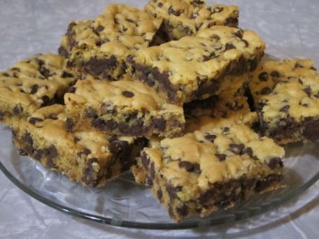 Grease a 13 x 9 x 2-inch pan. Set aside. Heat oven to 350F. Mix together cake mix, beaten eggs, melted butter and chocolate chips. Put in greased pan and bake for 20 minutes. Cool slightly and cut into bars.