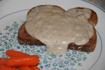 In a medium saucepan, melt margarine. Add flour, cook until bubbly. Gradually stir in milk. Heat until thickened. Add soup and flaked tuna. Heat through. Serve over toast.