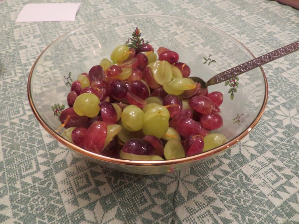Slice red and green grapes in half lengthwise and place in a medium-sized serving bowl. Add orange juice, sugar, vinegar and orange zest and stir to dissolve sugar. Refrigerate until serving time, about 30 minutes.