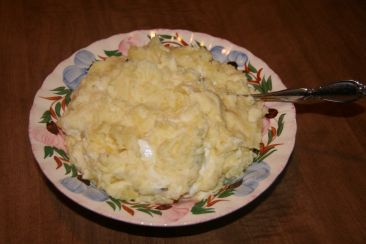 Place potatoes in a Dutch oven, and cover with water, bring to a boil. Reduce heat, and simmer for 10 minutes or until tender. Drain. Return potatoes to pan; add the milk and salt. Mash the potato mixture with a potato masher to desired consistency. Add the cheese, and stir just until blended.