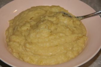 Boil sweet potatoes for about 30-35 minutes. Drain potatoes and mix well with maple syrup, cream cheese, butter, and salt.